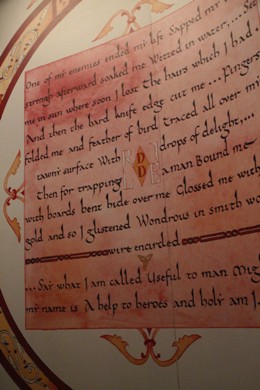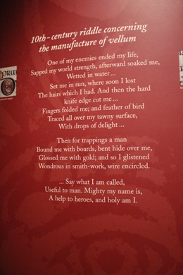 die aus dem 9. Jhdt. stammen soll. Jeden Tag kann man eine andere Seite des Buches bewundern, fotografieren des Originals